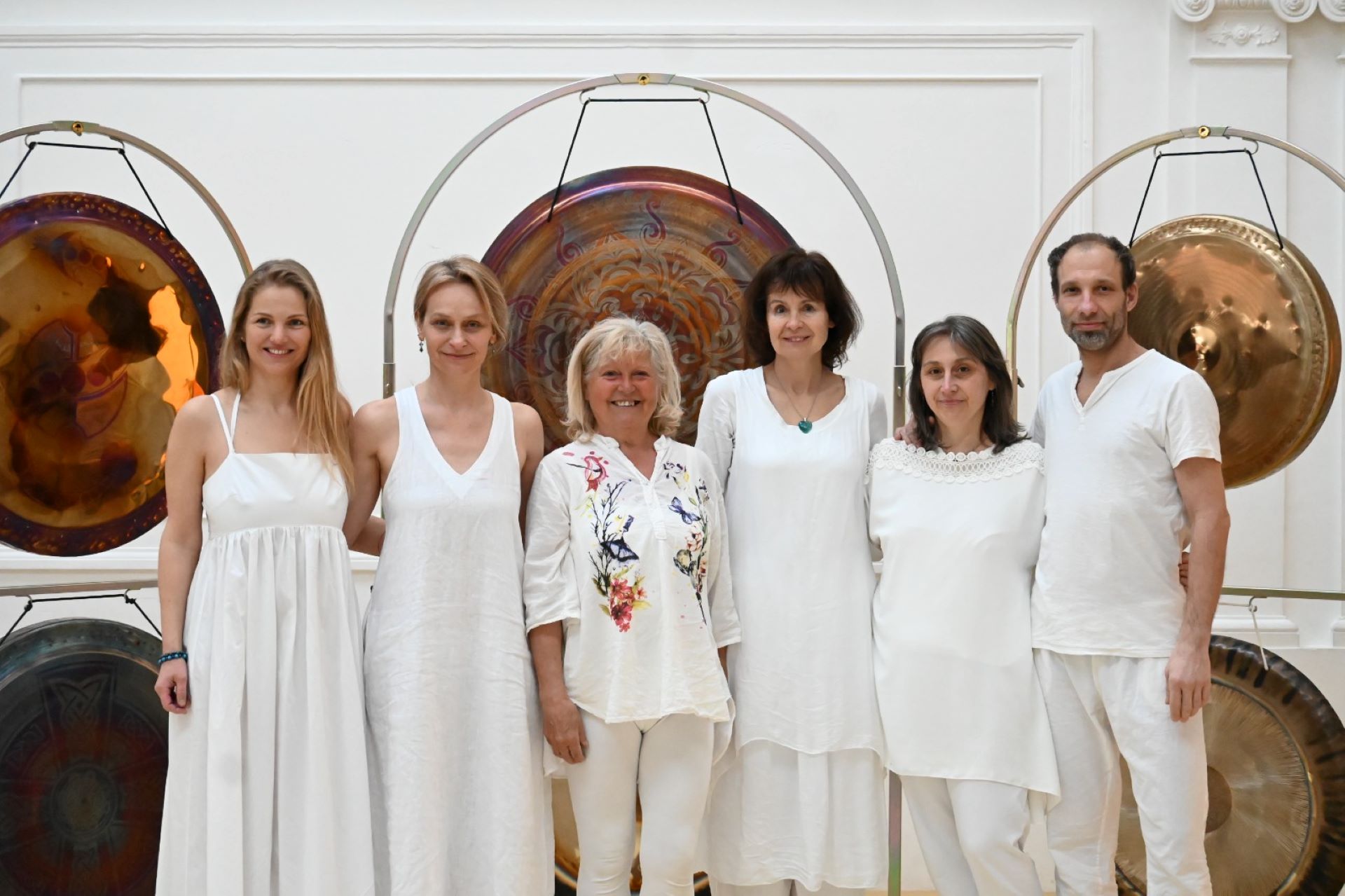 Já i Marcelka Valtrová se už moc těšíme, až se společně opět ve smíchovském Chrámu zastavíme a spočineme ve sladké blaženosti za zvuku chrámových gongů. Tady hrajeme ve dvou a to znamená minimálně 6 gongů, tibetské mísy, basové tóny, zvukové vlny, mušle, šamanský buben, shruti box... Naše nabídka harmonizačních nástrojů je široká a my je rády...